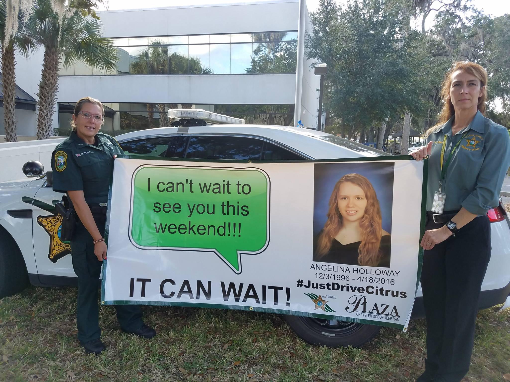 Një vit pas vdekjes së të bijës, nëna e Marvalene po i informon njerëzit rreth rreziqeve të shkrimit gjatë ngasjes. Edhe policia lokale po merr pjesë në fushatë. Tashmë, fytyra e Angelina Holloqay, së bashku me mesazhin e fundit të saj, po shfaqet përgjatë rrugëve të Floridës si një paralajmërim për shoferët. Sipas Departamentit Amerikan të Transportit, 3477 njerëz humbën jetën teksa i jepnin vetëm makinës në vitin 2015.