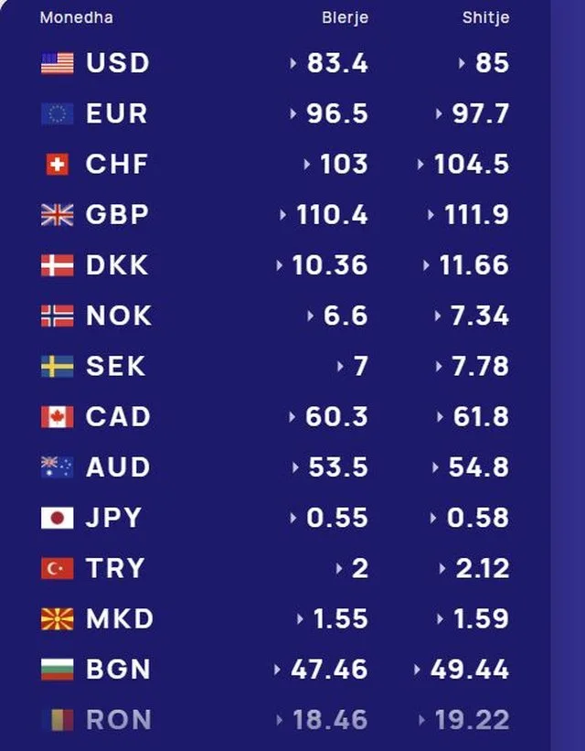 Më poshtë, po sjellim të dhënat e këmbimin valutor, për të gjitha monedhat e huaja: