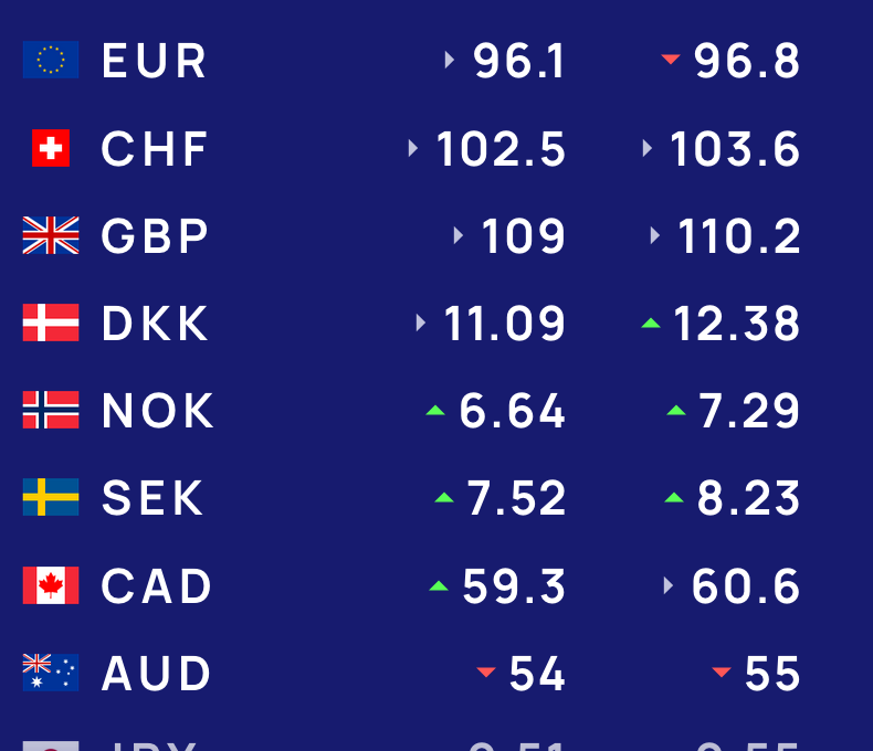 Për kursin e monedhave të tjera shihni tabelën e mëposhtme: