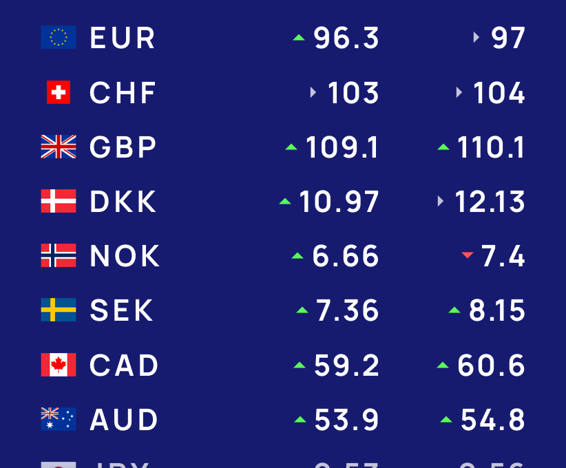 Për kursin e monedhave të tjera shihni tabelën e mëposhtme: