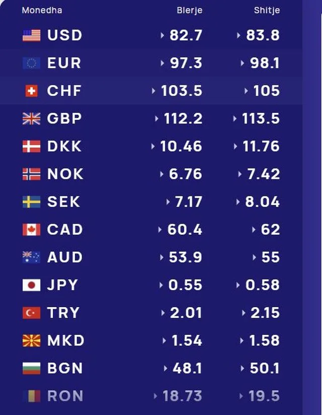 Më poshtë, po sjellim të dhënat e këmbimin valutor, për të gjitha monedhat e huaja: