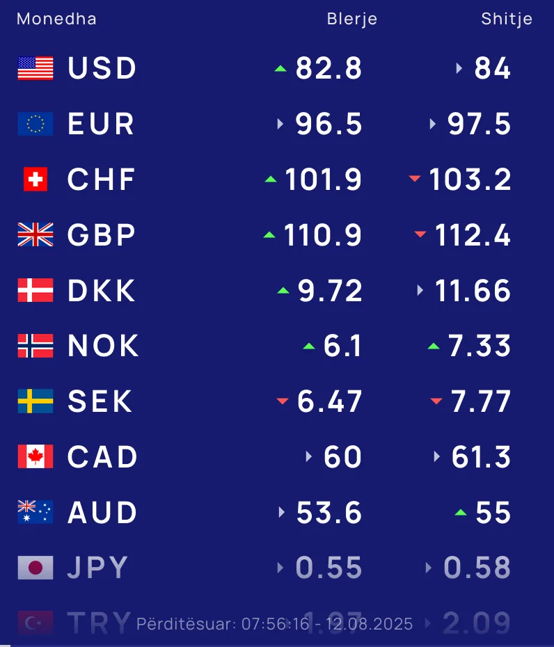 Sot, më 12 gusht 2025, dollari amerikan blihet me 82.8 lekë dhe shitet me 84 lekë.