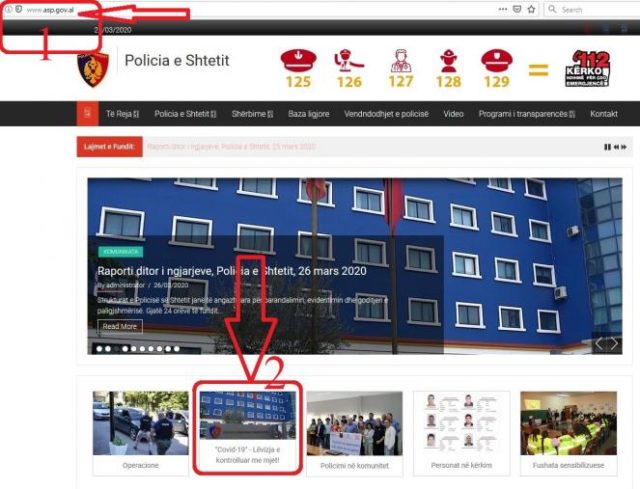 Policia e Shtetit, në faqen zyrtare të saj (ëëë.asp.gov.al),