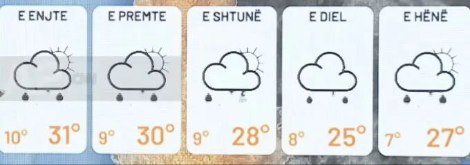 SInoptikania Tanja Porja duke folur per parashikimin e motit, ka treguar se pritet renie e temperaturave dhe se sonte vone ne mbremje nisin rreshjet e shiut.. Per me teper ndiqni videon.. Post Views: 1,332 previous“Xhaxhi, unë kam frikë! Pacienti 10-vjeçar i kërkoi ilaç për..”, habit farmacisti: Erdhi tek unë dhe..next“Shokët i thanë je e shpifur”, flet babai i 15-vjeçares që u hodh nga lartësia: E bullizonin shokët e klasës.